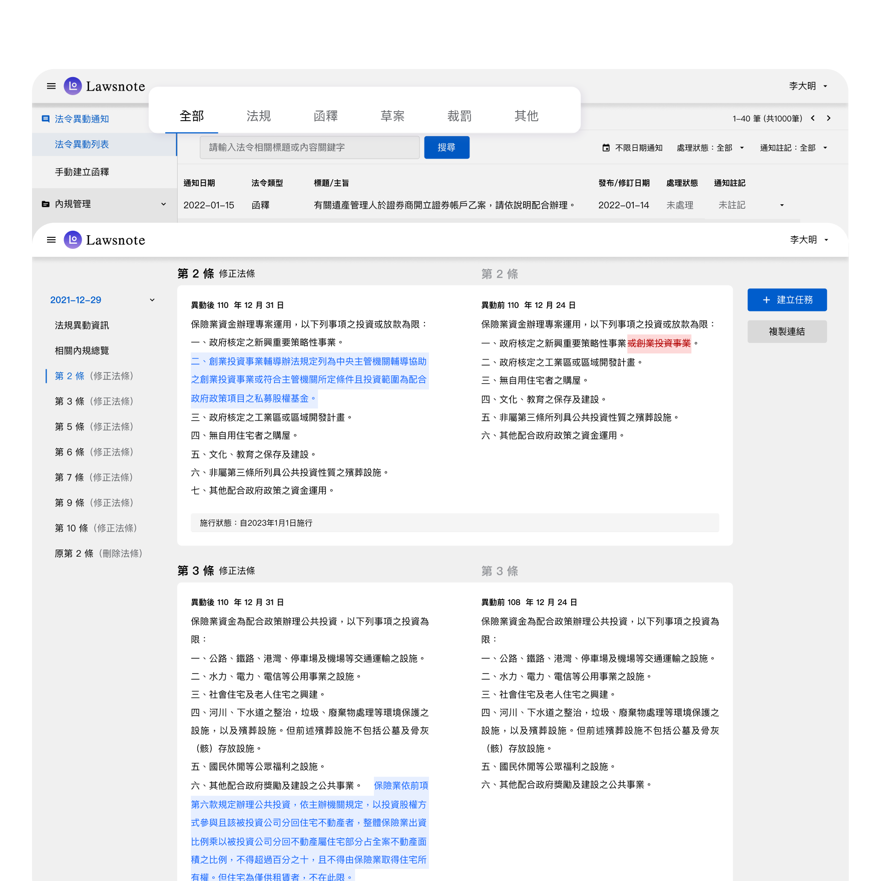 • 與法規資料庫一站式整合